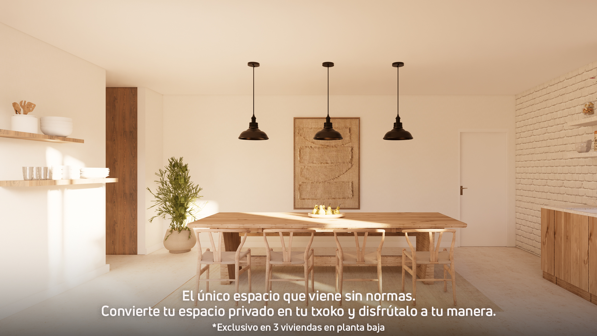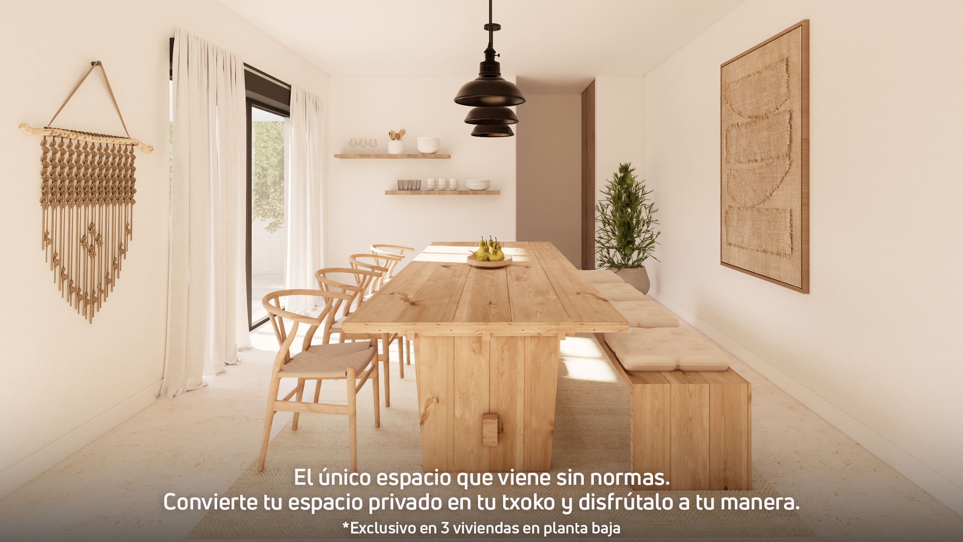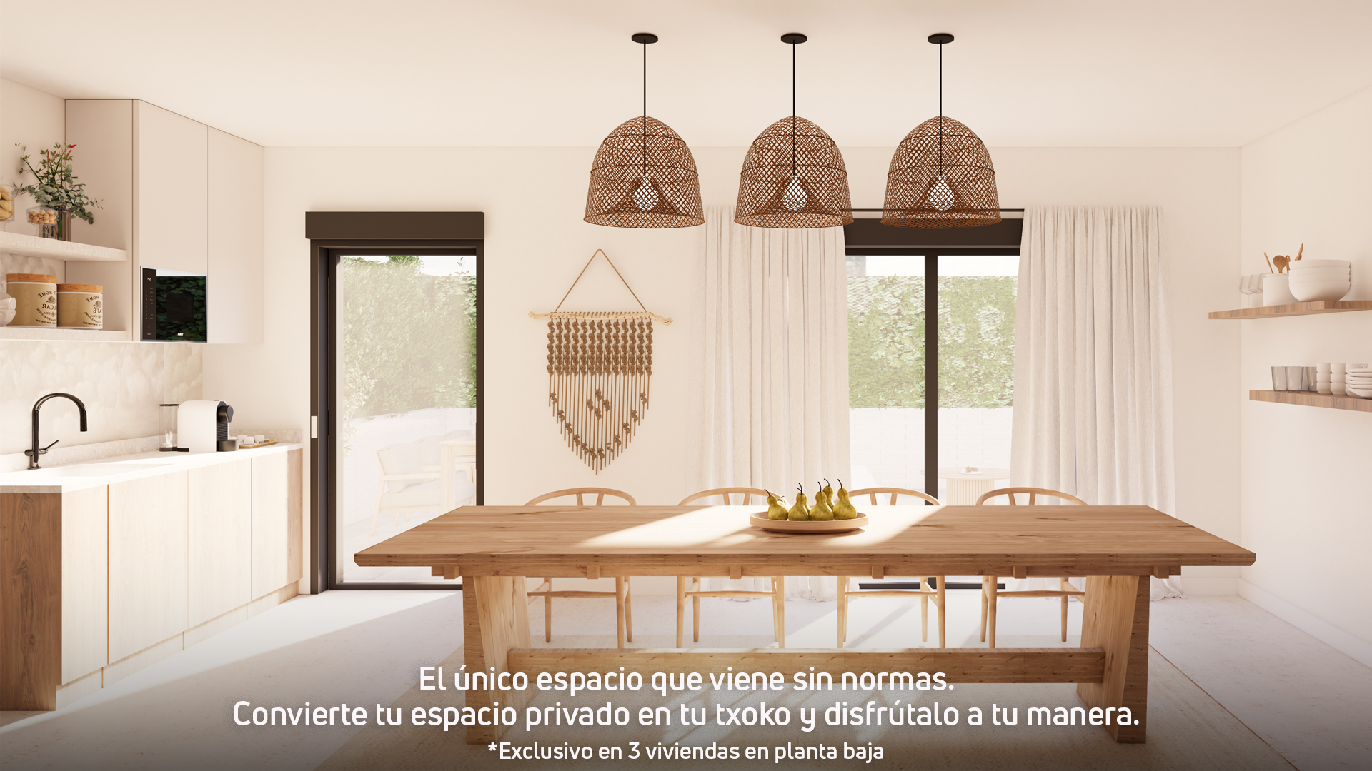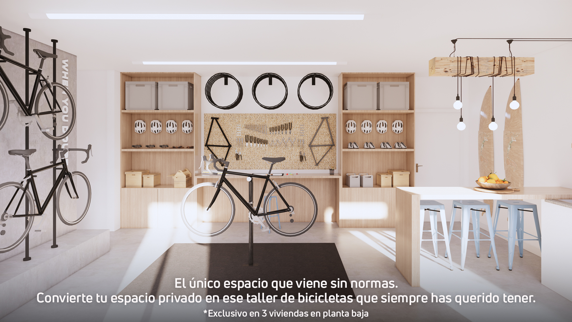 La promoció compta a més amb 3 habitatges a planta baixa que disposen d'una sala privativa amb accés independent des del jardí. Un espai versàtil que podràs adaptar al teu estil de vida: el taller de bicicletes que sempre has volgut, el teu gimnàs o un txoko per gaudir amb família i amics.