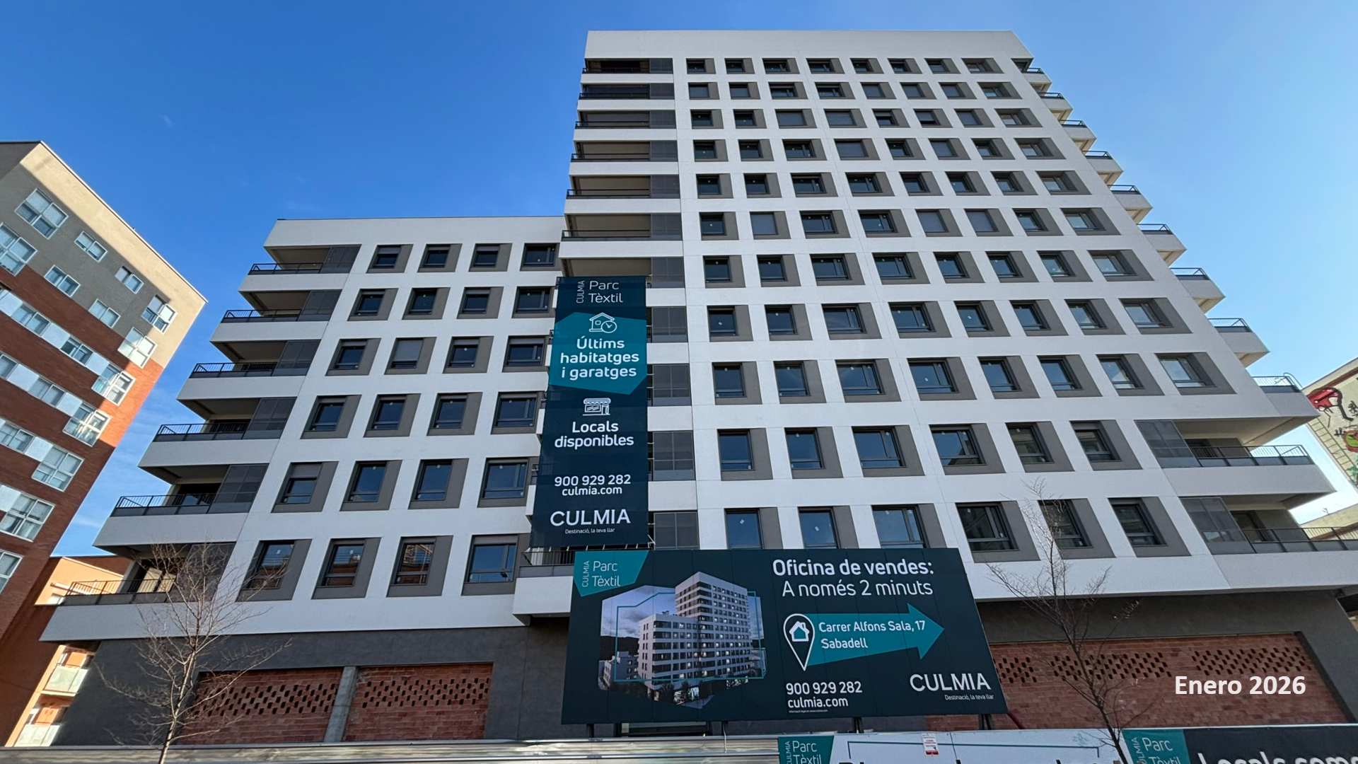Culmia Parc Tèxtil es una promoción de obra nueva formada por 82 viviendas de 2, 3 y 4 dormitorios, de las cuales quedan disponibles viviendas de 3 y 4 dormitorios, con terrazas, plazas de garaje y trasteros. En las zonas comunes se encuentra una piscina en la cubierta del edificio con unas vistas espectaculares.